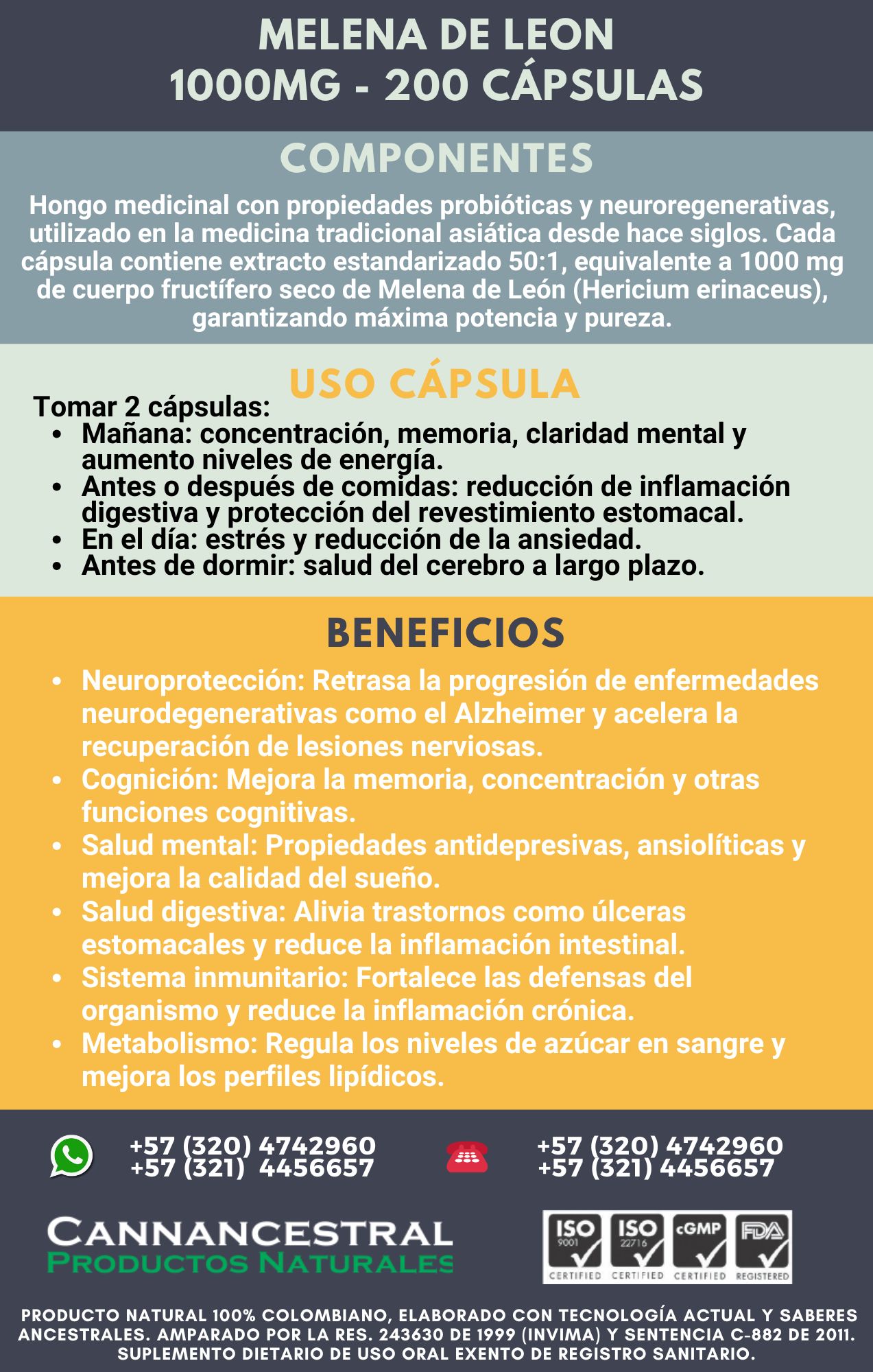¡No esperes más para potenciar tu salud! Compra ahora la MELENA DE LEÓN 1000 MG y comienza tu camino hacia una vida más saludable. ¡Tu cuerpo y mente te lo agradecerán!